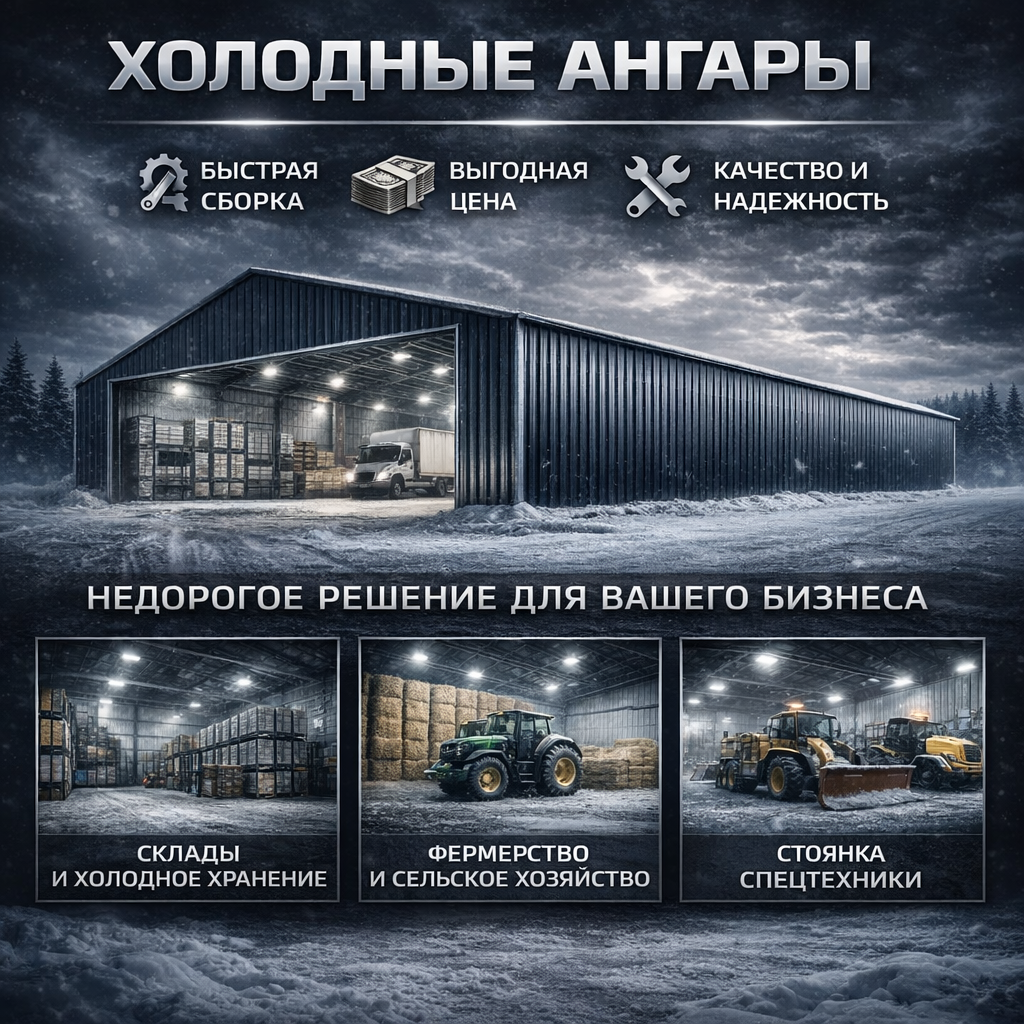 Холодный ангар — это неутеплённая металлическая конструкция, предназначенная для хранения материалов, техники или продукции, не требующей поддержания температуры. При выборе важно учитывать сезонность эксплуатации и уровень влажности.